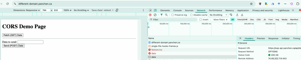 If a student says they’re from another course, say CSC373, I politely tell them, “Sorry, my office hours aren’t for that course.” The polite student then leaves — that’s the browser enforcing CORS and blocking the response.