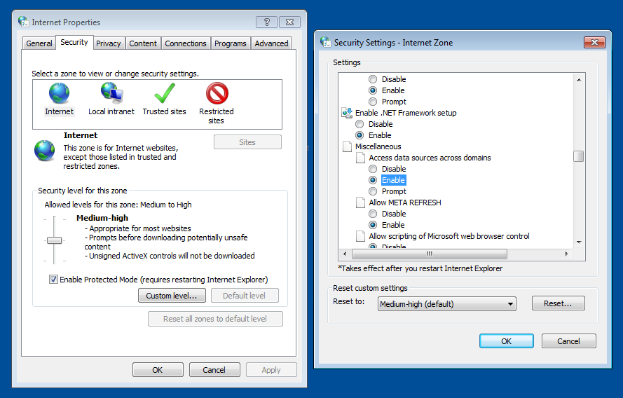 Using an old browser like Internet Explorer, one can also specify the policies in the security settings.